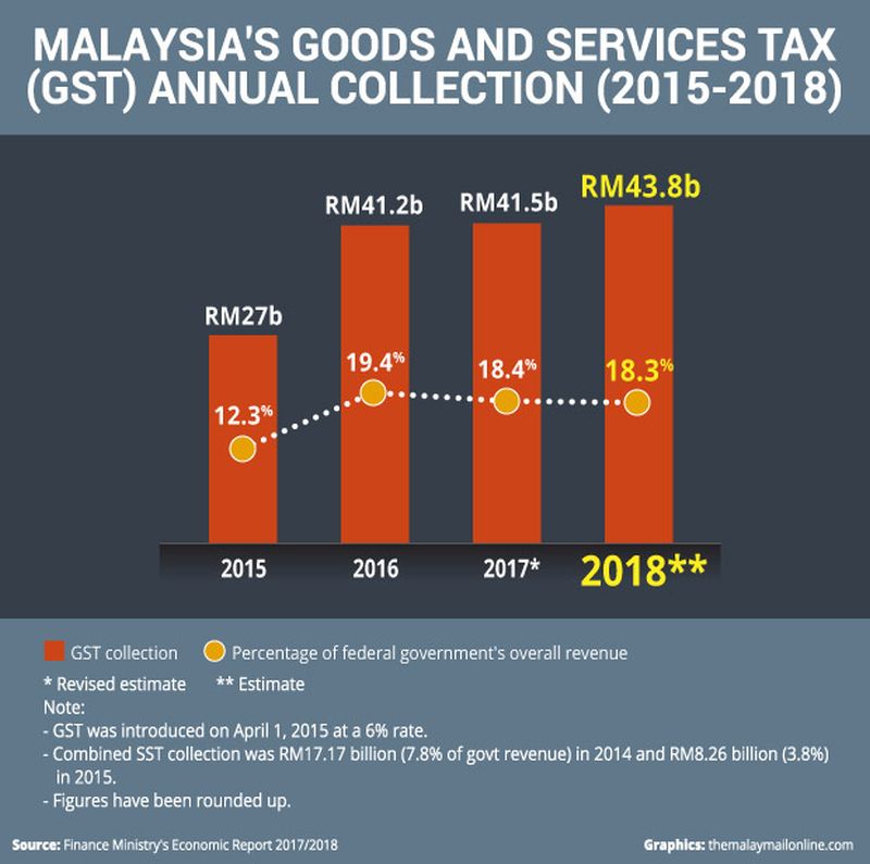 The GST later contributed RM41.206 billion or 19.4 per cent of the government income in 2016, which is almost one-fifth of the revenue.