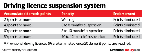PETALING JAYA, Sept 3 — The Transport Ministry released an updated demerit point system as a part of its new Automated Awareness Safety System (AwAS), with changes to the scoring and levels at which penalties are applied.