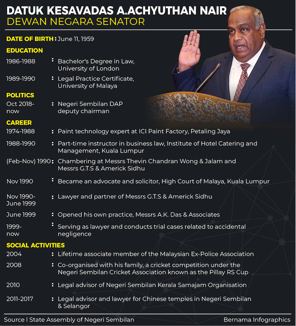 Kesavadas Nair, 59, who was born in Klang, Selangor, is a lawyer and has been a member of the DAP since 2008. — Bernama