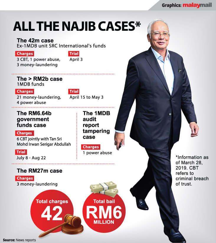 On July 4, 2018, Najib, who is Pekan Member of Parliament, was charged at the Sessions Court with three counts of criminal breach of trust (CBT) and one count of abuse of power in connection with SRC International Sdn Bhd funds totalling RM42 million.