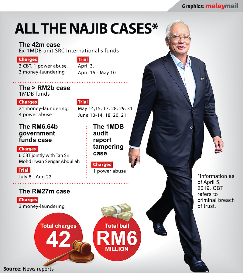 Najib, 66, is facing three counts of criminal breach of trust, one charge of abusing his position and three counts of money laundering over SRC International Sdn Bhd funds amounting to RM42 million.