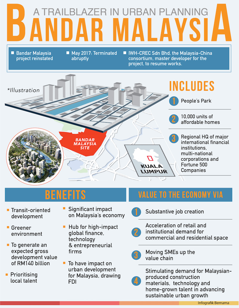 “It will draw major international financial institutions, multi-national corporations and Fortune 500 Companies to locate their regional headquarters in Bandar Malaysia.