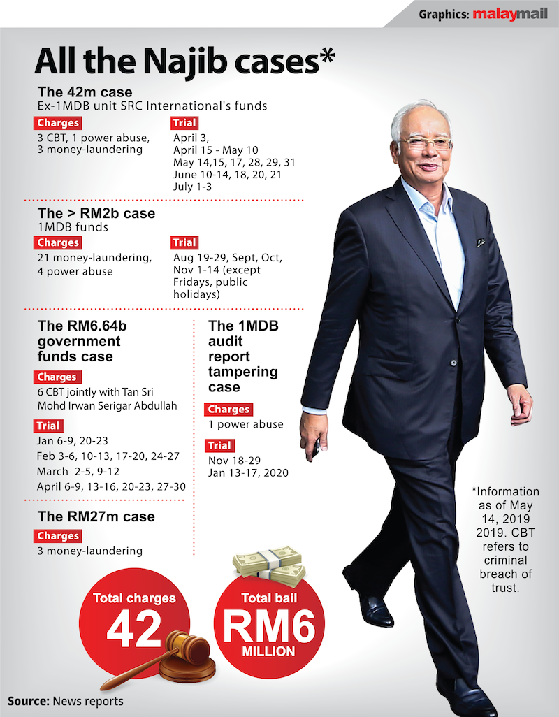 Najib is currently on trial over seven charges, including money laundering and criminal breach of trust of over RM42 million belonging to former 1Malaysia Development Berhad (1MDB) subsidiary SRC International.