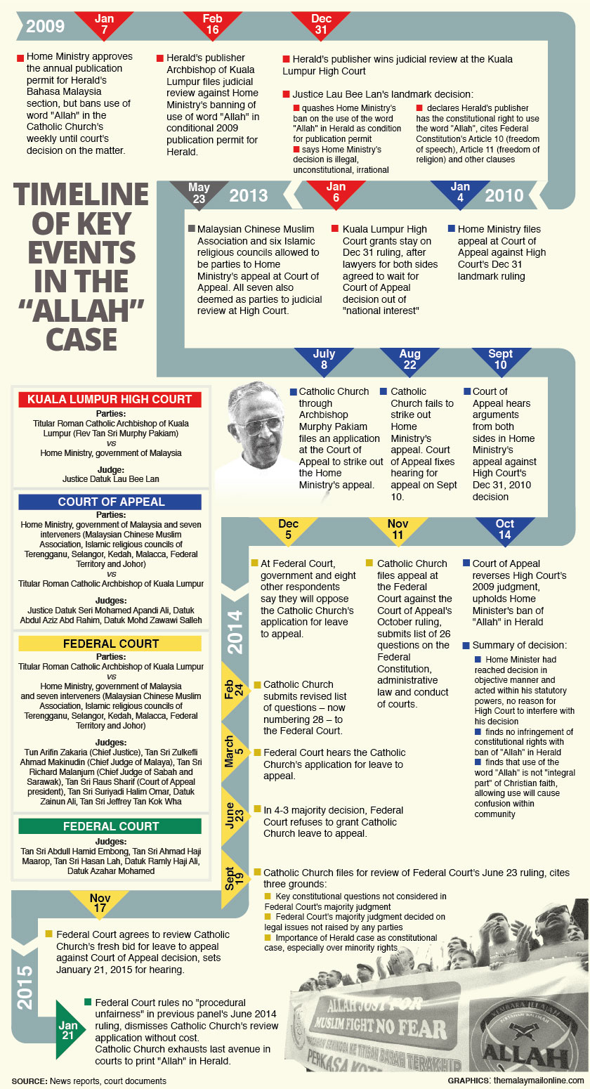 What was this case about: The home minister in January 2009 banned the Catholic Church’s internal newsletter Herald from using the Arabic word for God, “Allah”, in its Bahasa Malaysia section.