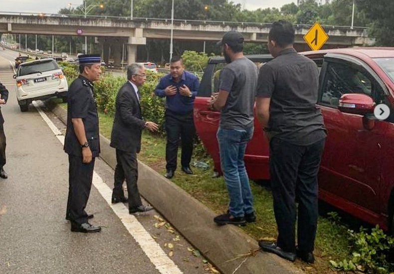 “Fortunately, the driver Puan Jasliza Jamil suffered only minor injuries,” read the accompanying caption to the three pictures showing the Yang di-Pertuan Agong at the scene of the incident this morning.