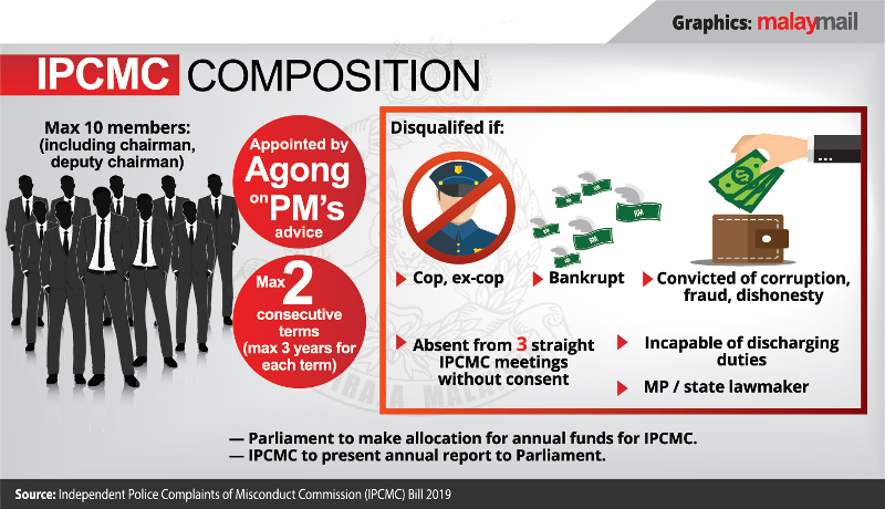 The IPCMC is to have 10 appointed members at maximum — including a chairman and deputy chairman, but with the condition that none of them is a current or former police personnel or a public servant.