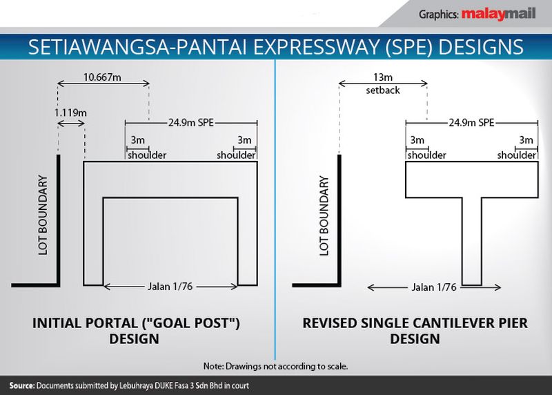 In an affidavit to oppose the lawsuit, SPE’s builder LDF3’s director Ahmad Nasir Mohd said the company had revised its initial design of using goal post-style portals to a new design of single piers or columns, which he said meant the Desa Pandan alignment now provides the minimum 13-metre setback required.