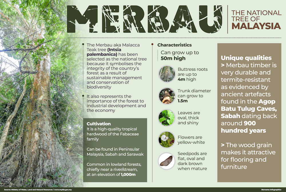 “I would like to take the opportunity to announce that the Merbau tree (Malacca teak) has been chosen as our National Tree. With its hardy nature, I believe that all Malaysians, can take the Merbau as a symbol of national pride.