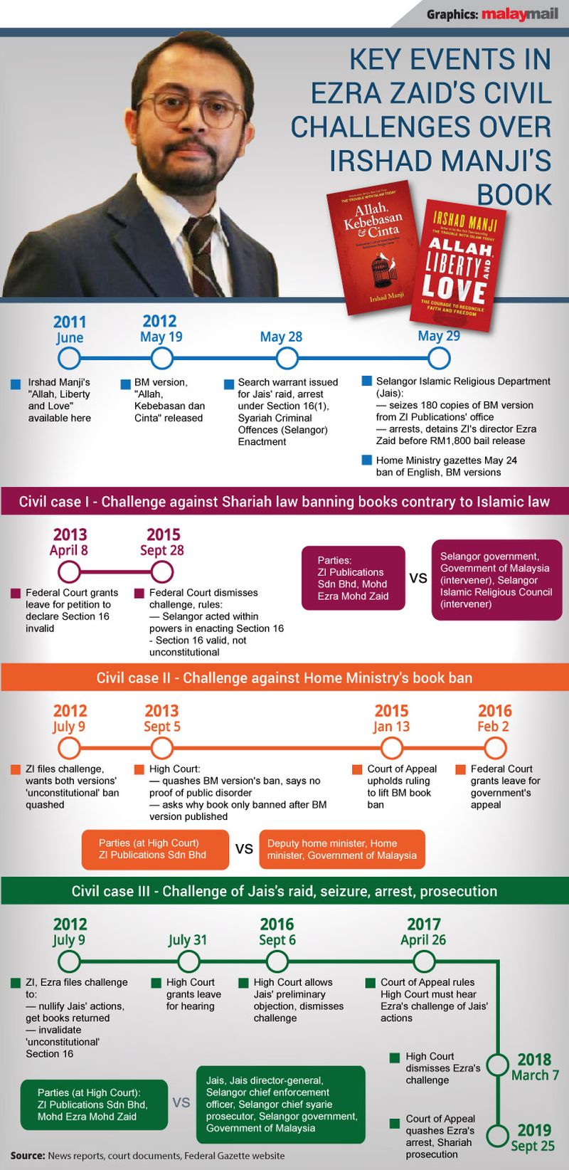 ZI Publications’ office had been raided by JAIS officers on May 29, 2012, where 180 copies of the translated book was seized and Ezra detained. Later on that same day, the Home Ministry issued a prohibition order on both the English and BM translation of Manji’s book’s in Malaysia, on grounds that the book is deemed offensive to Islam and Muslims.