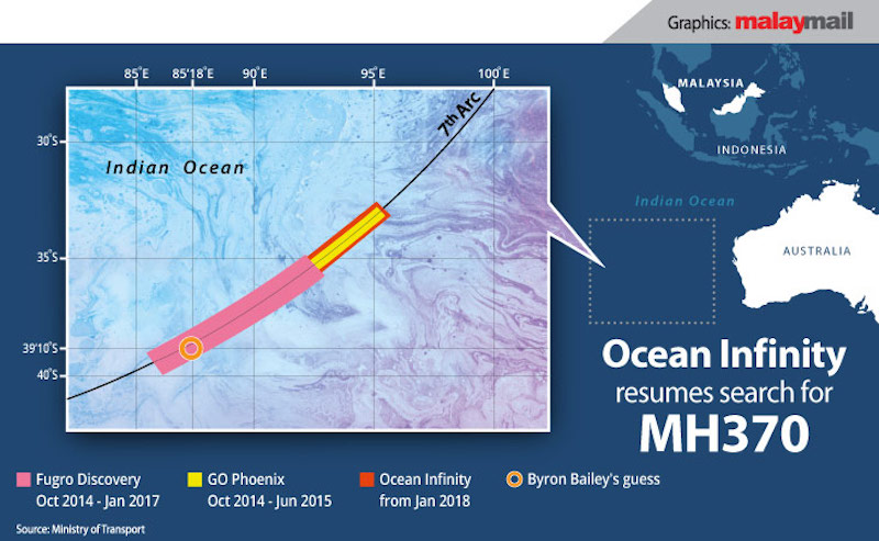 Underwater searches for the plane in the Indian Ocean, covering 120,000 square kilometres and costing about A$200 million, was subsequently suspended indefinitely in January 2017 until Malaysia accepted a “no-cure, no-fee” offer from US exploration firm Ocean Infinity in 2018.