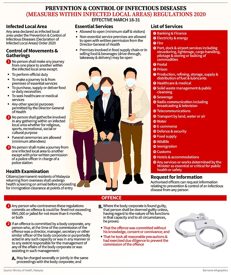 On Monday night, Prime Minister Tan Sri Muhyiddin announced a government order effective from today that would require Malaysians to stop all public gatherings and shut down any non-essential businesses and stores, with only places selling daily necessities and essential services such as transportation, food supply, health, pharmacies, banking and utilities allowed to continue operations.