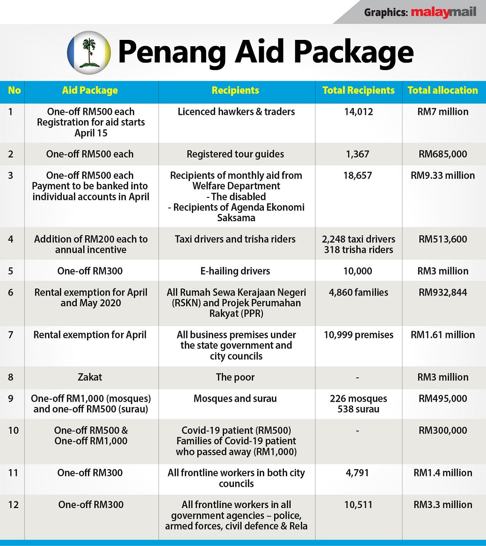 “The objectives of the aid package is to help these groups and to ensure business continuity for the state after the MCO,” he said.
