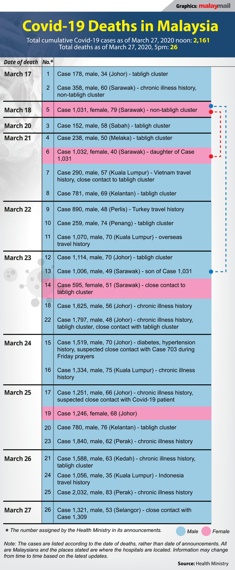 “This brings the total deaths reported to 26 cases nationwide,” said Dr Noor Hisham in a statement.