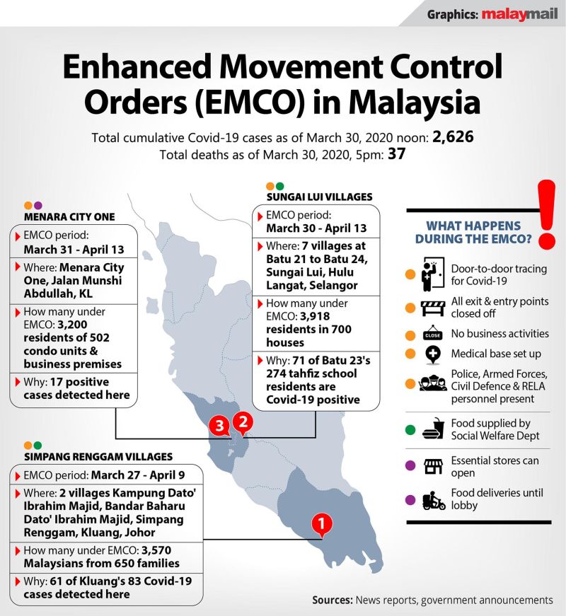Last week, it had announced the EMCO in two areas in Simpang Renggam in Johor after recording 61 positive cases of Covid-19 there, out of 83 in the Kluang district.