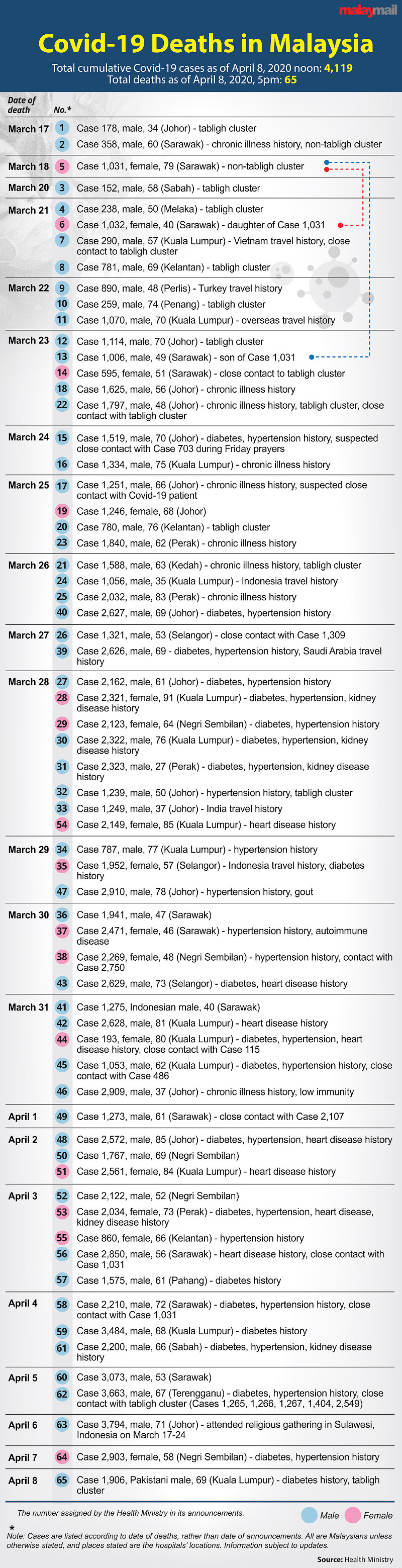 The death toll in Malaysia from Covid-19 cases currently stands at 65.