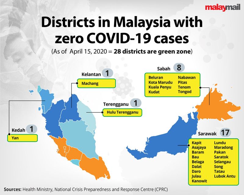 IPOH, April 16 — Three districts in Perak, namely Kuala Kangsar, Muallim and Kampar have been declared as green zones or areas that have zero Covid-19 cases as no new cases have been reported over the last 14 days.