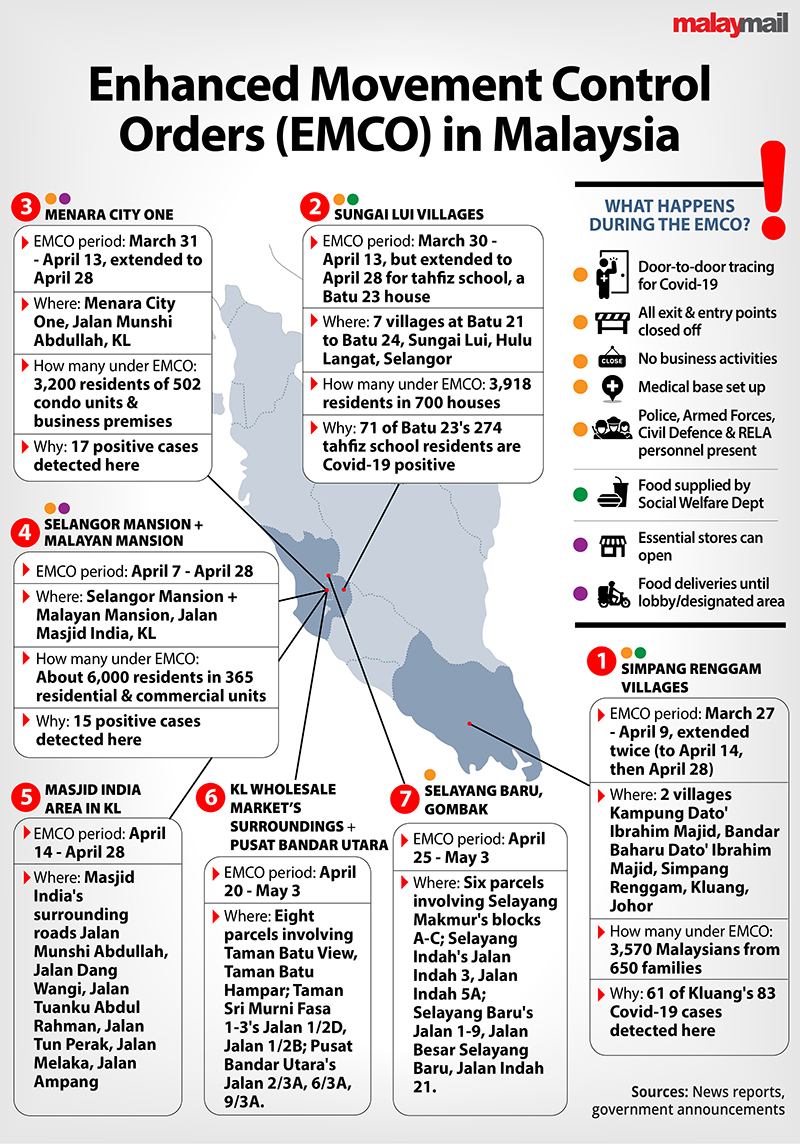 The EMCO was previously imposed on residential areas surrounding the Selayang wholesale market where most migrant workers reside, after the first Covid-19 death was reported there.