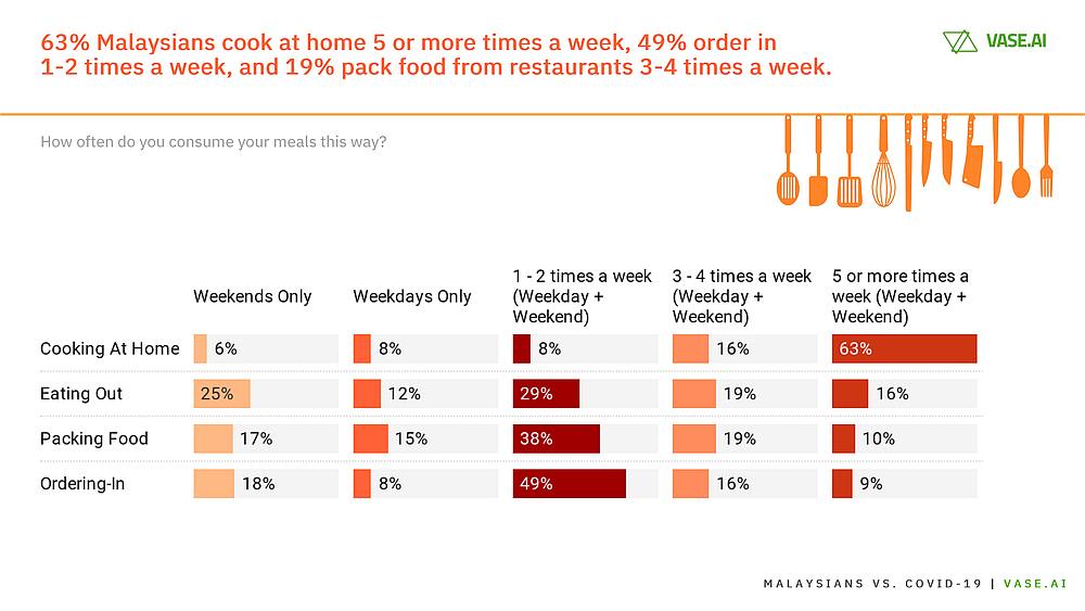 In comparison, 63 per cent of Malaysians cooked at home five or more times weekly while 49 per cent said they ordered one to two times weekly and 19 per cent packed their food from restaurants three to four times weekly.