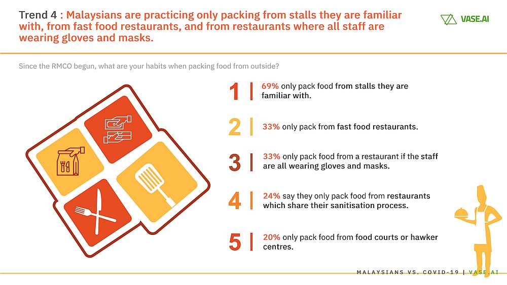 “Malaysians who have been eating out, ordering in and packing food from restaurants have spent less than RM20 on individual meals before the movement control order (MCO) period (42 per cent) and during the MCO period (39 per cent).