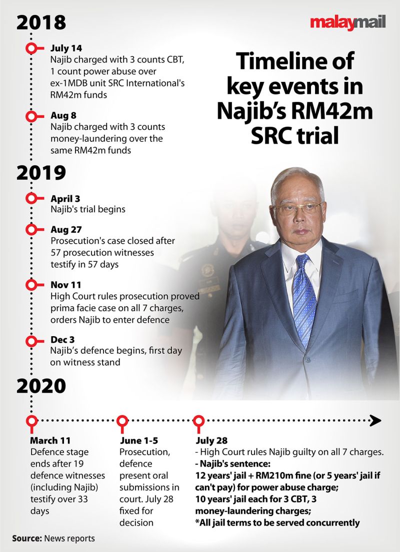 Last Tuesday, the High Court found Najib guilty of all seven charges of committing power abuse, criminal breach of trust, and money laundering in the SRC International trial.