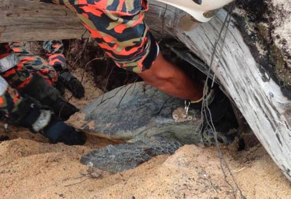CHUKAI, Aug 9 — Kerteh Fire and Rescue Station personnel rescued a female Green (Agar) turtle weighing 150 kilograms, which was trapped under a fallen tree in Pantai Cakar Hutan, Kampung Labohan, Kerteh, here, today.