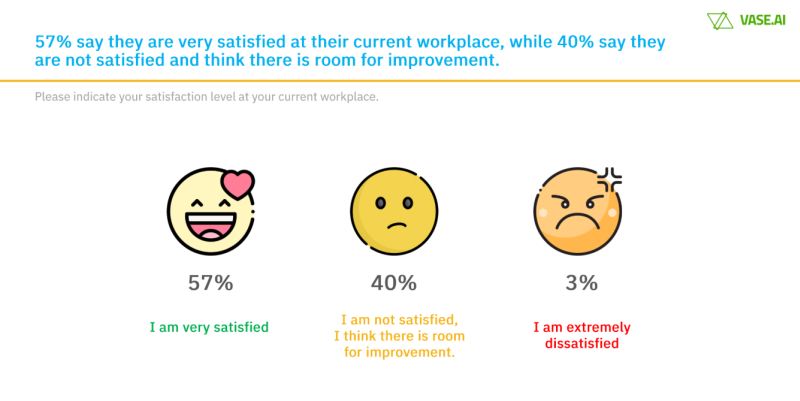 More than half or 57 per cent of those polled said they were “very satisfied” with their workplace now, while 40 per cent said they were “not satisfied” and felt there is room for improvement. The remaining 3 per cent said they were “extremely dissatisfied”.