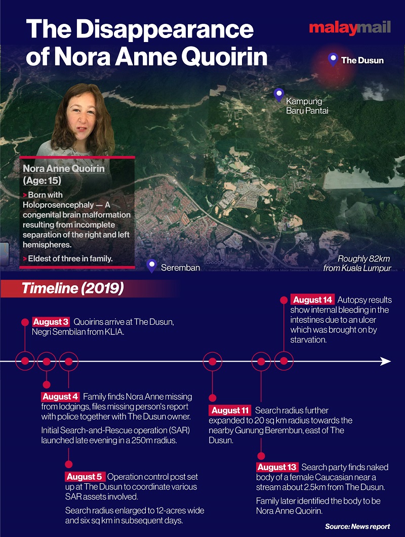 Quoirin, a 15-year-old with learning difficulties, disappeared from The Dusun resort last year where she was staying with her London-based family, triggering a 10-day hunt involving helicopters, search dogs and hundreds of searchers.