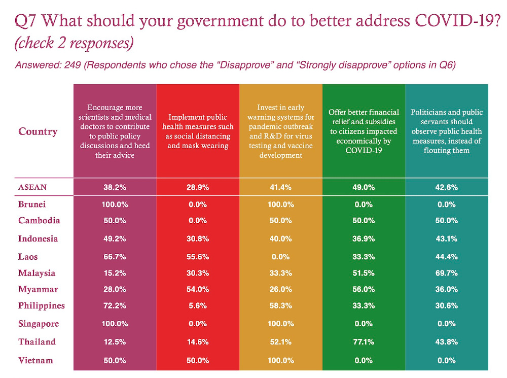 In the report released by Singapore-based Asean Studies Centre at ISEAS-Yusof Ishak Institute, most of those who “disapproved” or “strongly disapproved” of Putrajaya’s response said politicians and civil servants “should observe public health measures, instead of flouting them”.