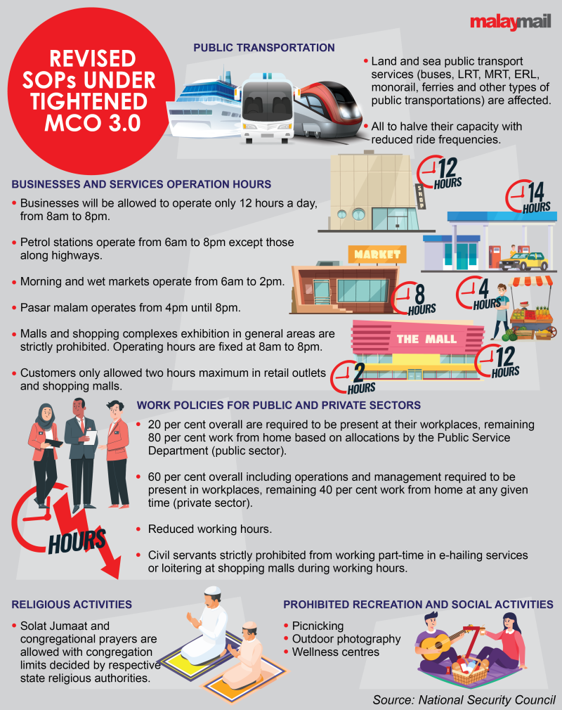 KUALA LUMPUR, May 24 — In the fight to curb the spread of Covid-19, constant revisions are being made to the standard operating procedures (SOPs) of the ongoing movement control order (MCO).