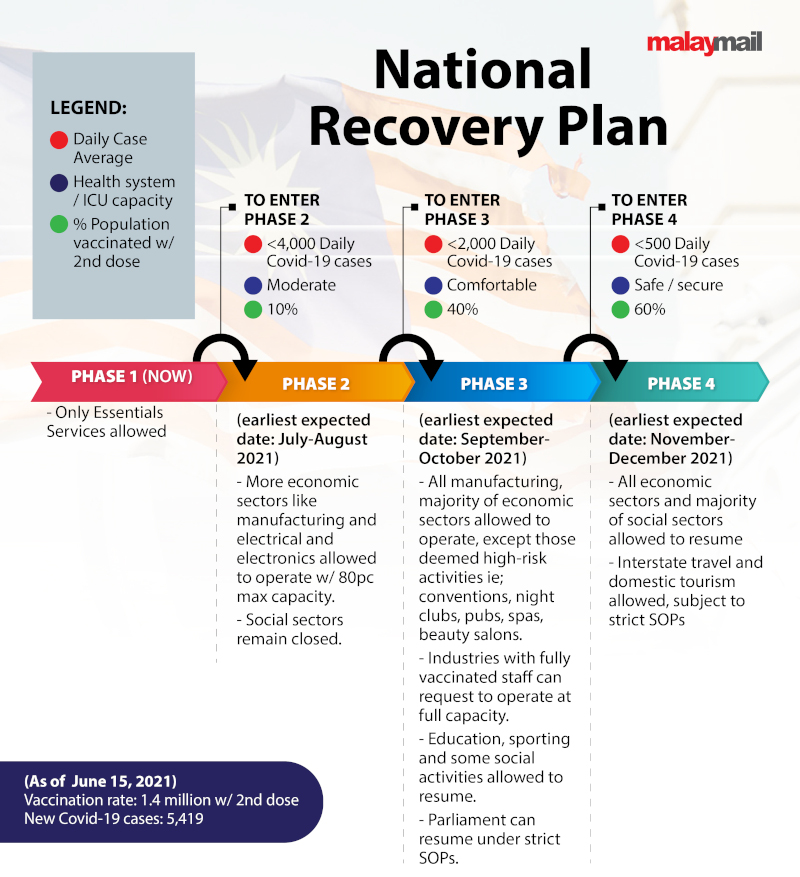 He said that during the third phase of the four-phase plan, which may be achieved that month if the numbers of Covid-19 new cases continued to drop to below 2,000 each day, and the vaccination rate reaches 40 per cent of the population.