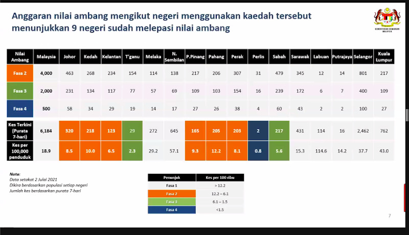 Similarly, NRP’s respective daily case thresholds can be interchanged into the formula to obtain the required threshold needed to transition into Phase 3 and Phase 4 respectively.