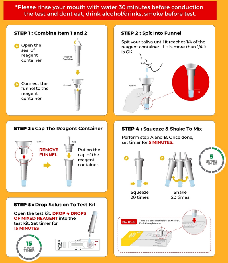 Salixium is an RTK Antigen test that uses saliva and a nasal sample to detect the presence or absence of the SARS-CoV-2 antigen. Don’t be alarmed, as the nasal sample doesn’t require you to go as deep as a PCR test. You only need to swab gently 2cm up your nostrils.