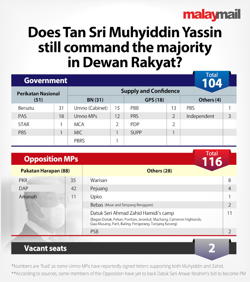 Malay Mail tallied up the events that unfolded this week, as more and more Oppositions claimed that the Pagoh MP had lost his majority, to determine if Muhyiddin’s insistence was plausible.