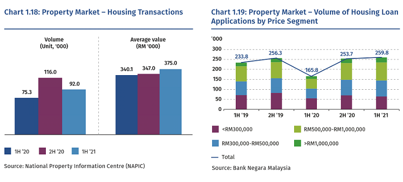 Among other things, BNM had also noted that demand for housing loans has now recovered to above pre-Covid-19 pandemic levels, as the number of applications for housing loans had in the first half of 2021 increased across most price categories of residential properties, as compared to the second half of 2020.