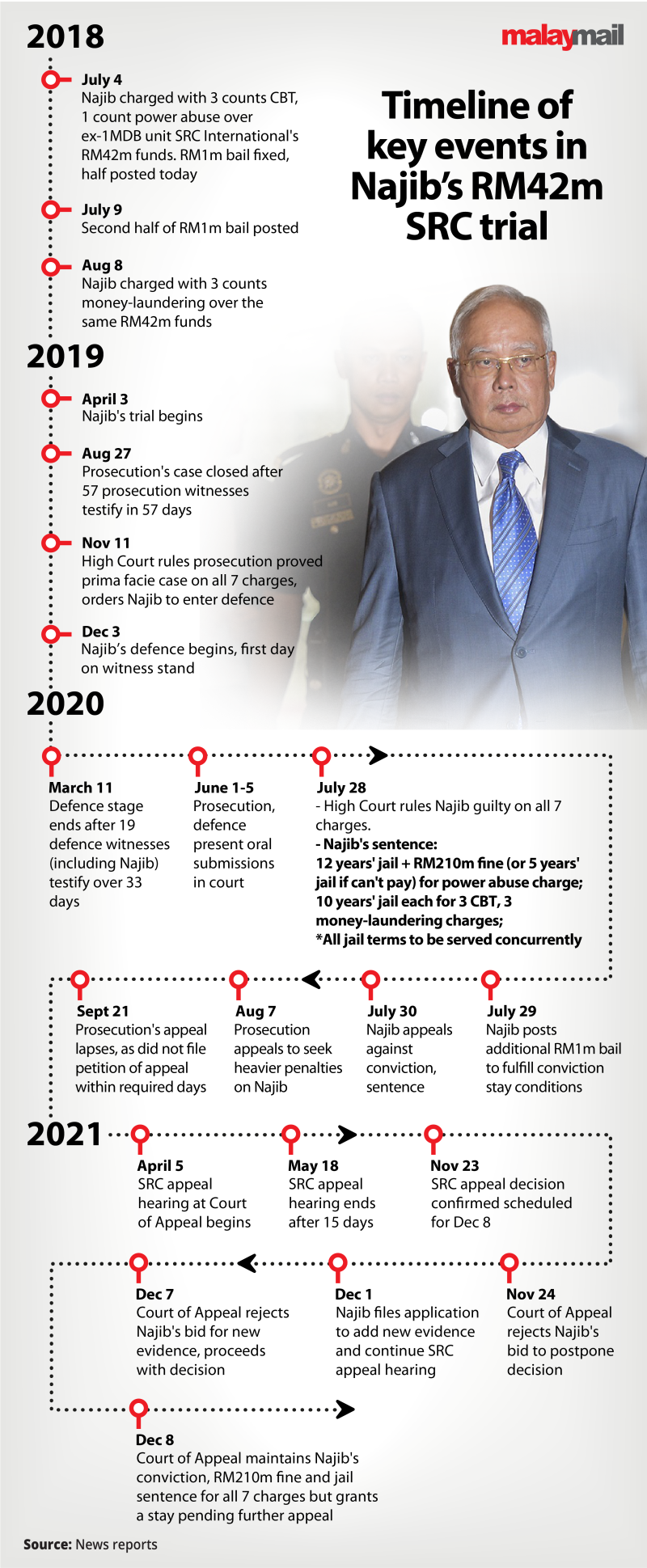 Yesterday, Najib failed in his appeal at the Court of Appeal, where he was seeking to overturn the High Court’s July 28, 2020 decision which found him guilty of all seven charges relating to SRC’s RM42 million.