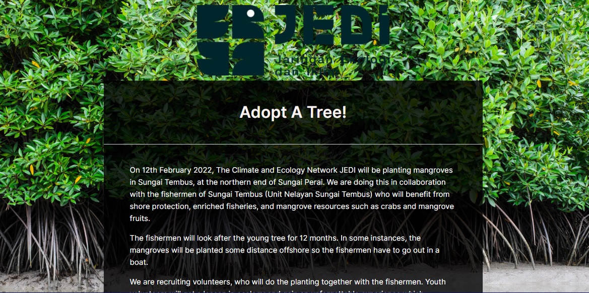 GEORGE TOWN, Feb 4 ― An environmental group, The Climate and Ecology Network (JEDI), launched an adopt-a-tree project today in its efforts to protect the shoreline while providing a source of income for fishermen involved in the project.