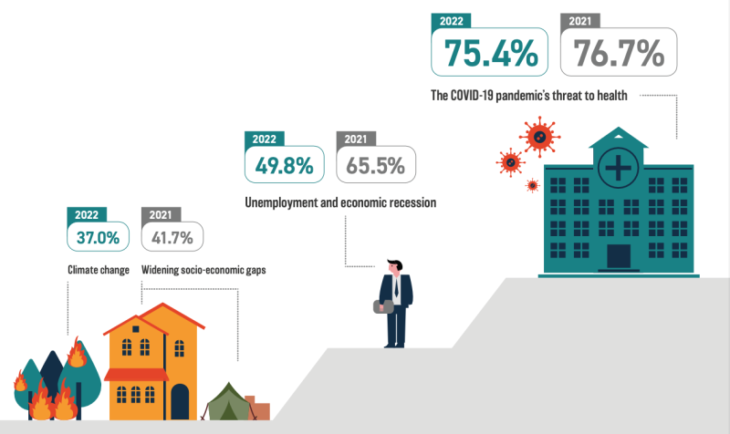 This was followed by political instability in the region (50.4 per cent), increased military tensions (28.9 per cent), socioeconomic gaps and climate change (26.7 per cent each), deteriorating human rights conditions (20.7 per cent), as well as terrorism (11.1 per cent).