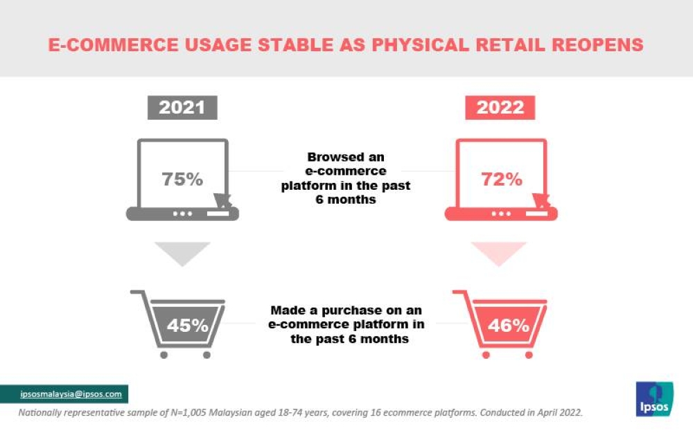 Lars Erik Lie, associate director of Ipsos Malaysia's public affairs division, said the move towards online shopping looks to be structural with the country's economy reopening wider after two years with Covid-19.