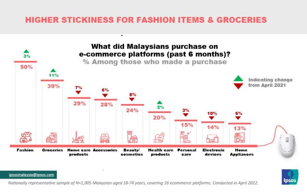 But it noted that Malaysians are less inclined to buy pricier speciality items such as electronics and home appliances online compared to last year.