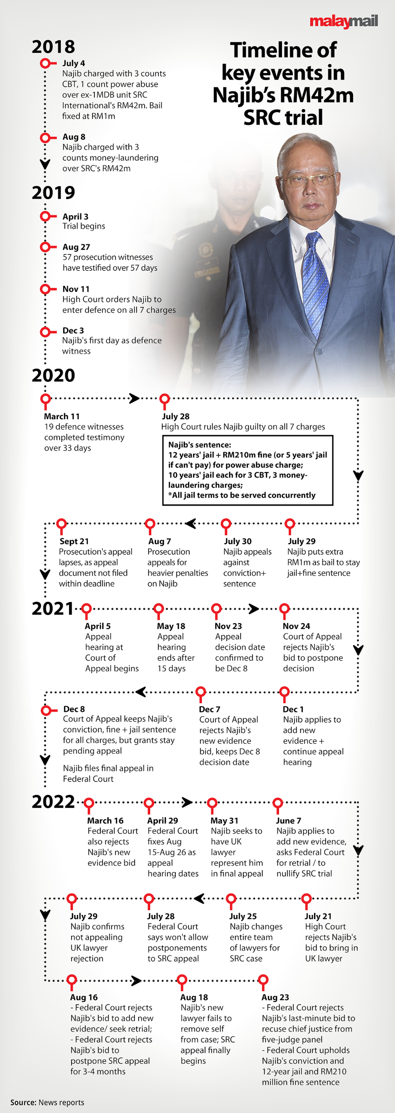 A five-member bench led by Chief Justice Tun Tengku Maimun Tuan Mat dismissed Najib’s appeal to set aside the conviction and sentence imposed by the Kuala Lumpur High Court on July 28, 2020.