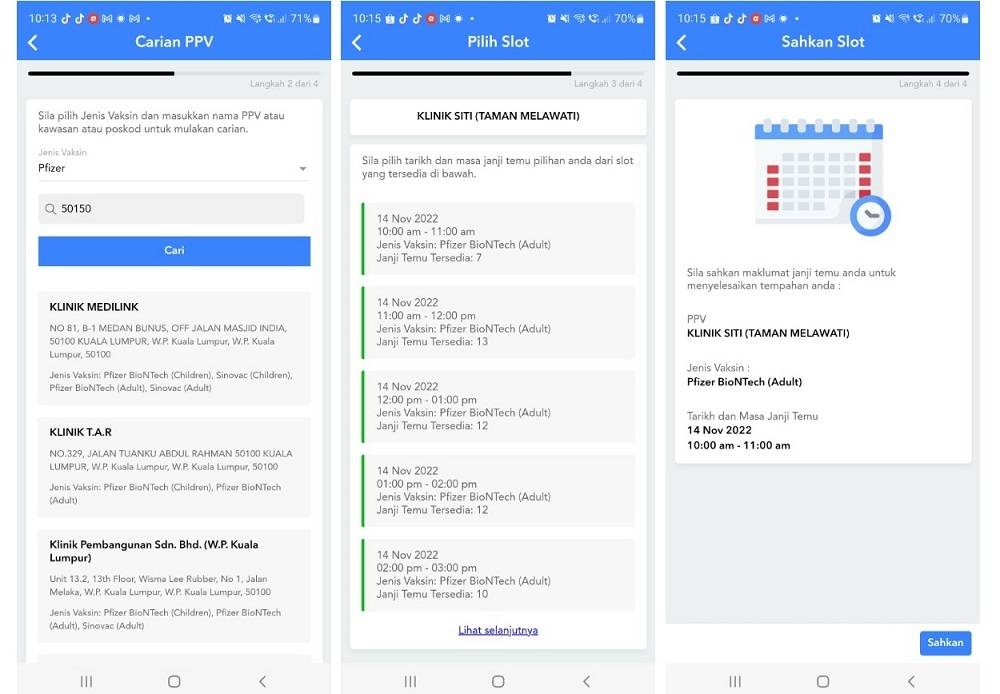 To do so, tap on the Covid-19 icon on the bottom of the screen, then select “Covid-19 Vaccination” and “Vaccine for [your name].” From there, you can schedule an appointment at your nearest vaccination centre (PPV). You’ll need to make sure that your MySejahtera app has been updated to the latest version. All second booster doses will be of the Pfizer vaccine, as the latter is the only one to be approved by the government.