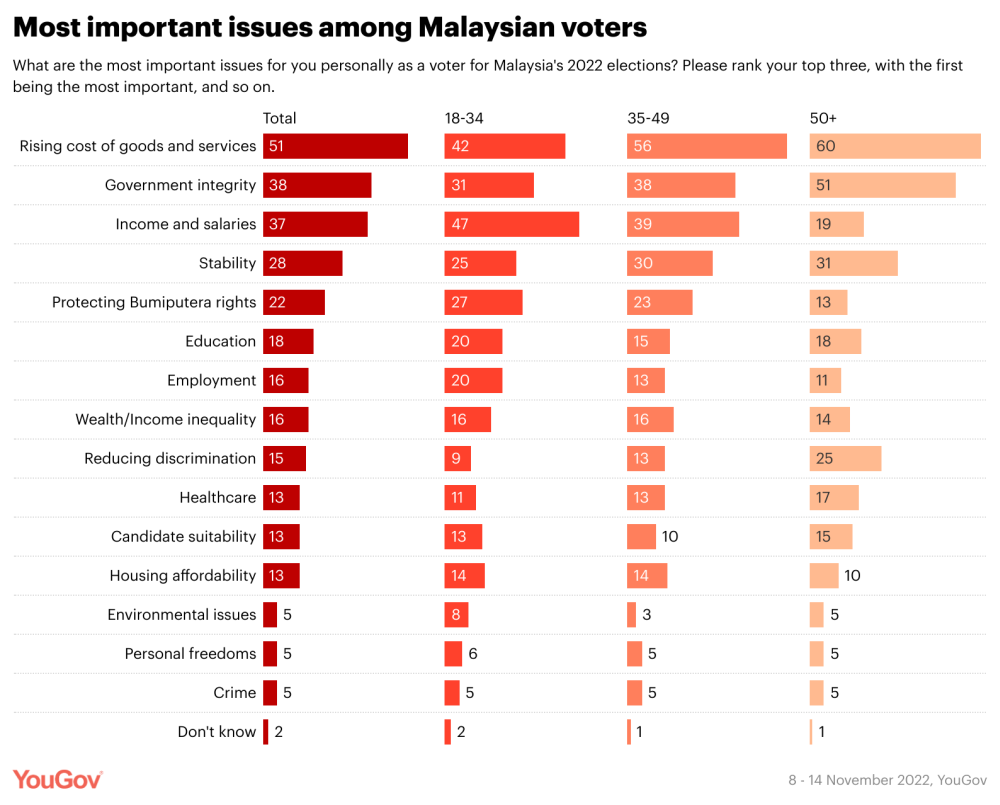 Another 28 per cent chose stability, while 22 per cent chose protecting Bumiputera rights.