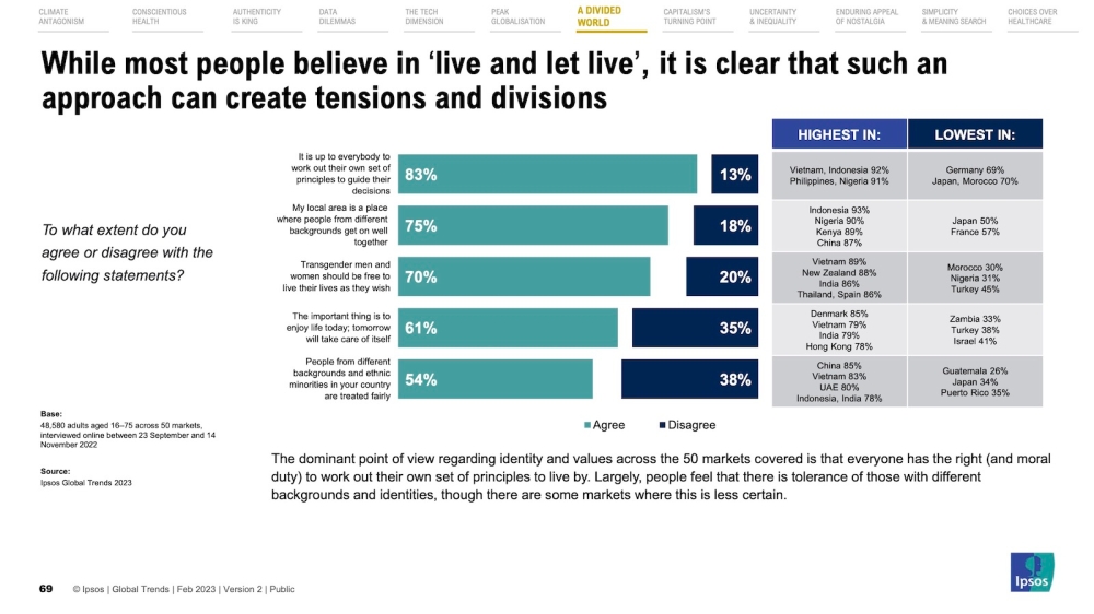 In the report of the 2023 edition of its Global Trends survey released this week, Ipsos said 54 per cent of Malaysian respondents agreed with the statement versus 40 per cent who were against it.