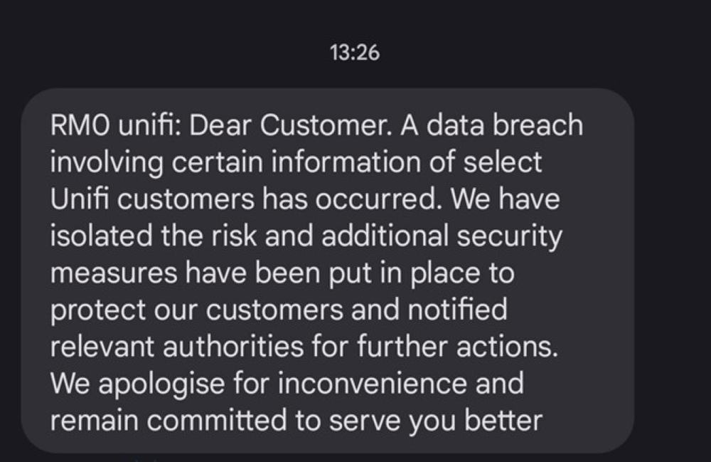 KUALA LUMPUR, JULY 12 — Telekom Malaysia™ might have suffered another data breach, just half a year since its last cybersecurity issue. We were first alerted of it when one of our readers reached out to us to ask about an SMS sent to them by Unifi, alerting them about a data breach that involves some of their information.