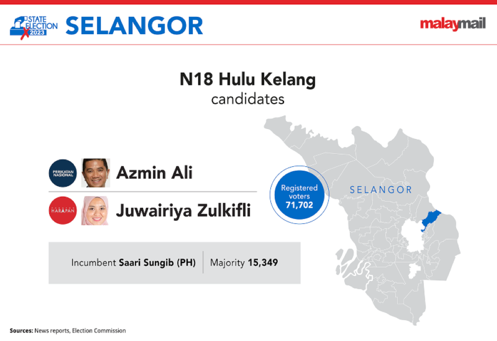 Azmin has been touted as a PN’s candidate to be Selangor menteri besar. He will face Juwairiya Zulkifli from PH, a political aide of current Selangor caretaker menteri besar Datuk Seri Amirudin Shari.