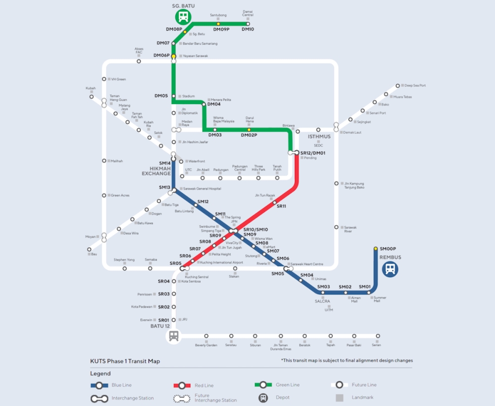 There is also the Green Line which covers the route between Pending and Damai Central. Both of these routes are scheduled to begin operation starting from 2026 and 2027, respectively.