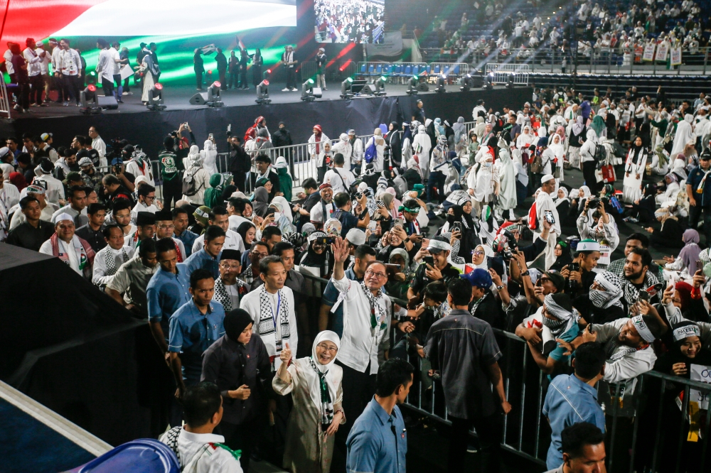 At approximately 9.30pm, Prime Minister Datuk Seri Anwar Ibrahim arrived at Axiata Arena to address the rally, fresh off a flight from Egypt following a two-day working visit to the country.