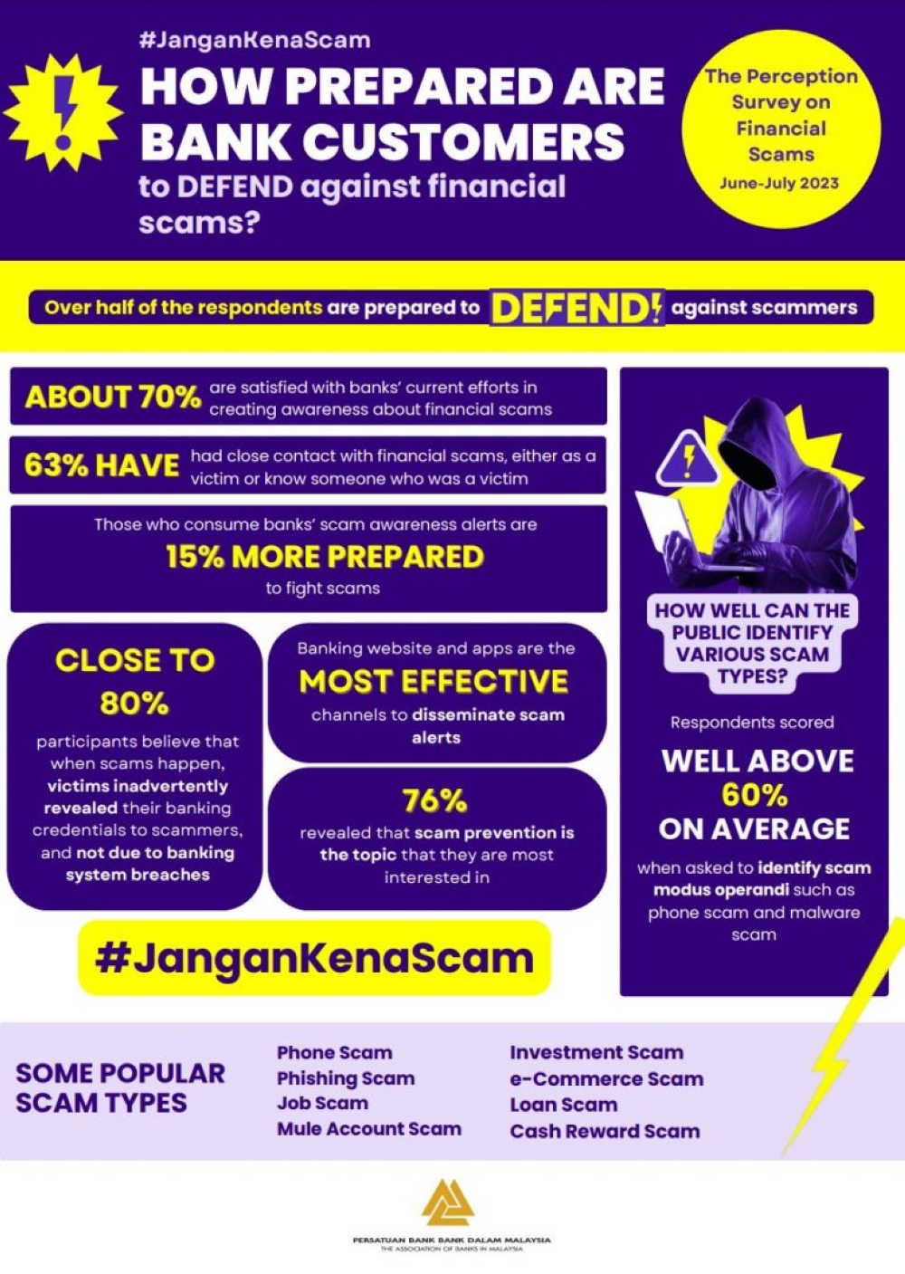 They also found that more than half of the respondents feel capable of managing and handling financial scams, and those who read and understand banks’ scam awareness alerts are shown to be 15 per cent more prepared to fight scams.