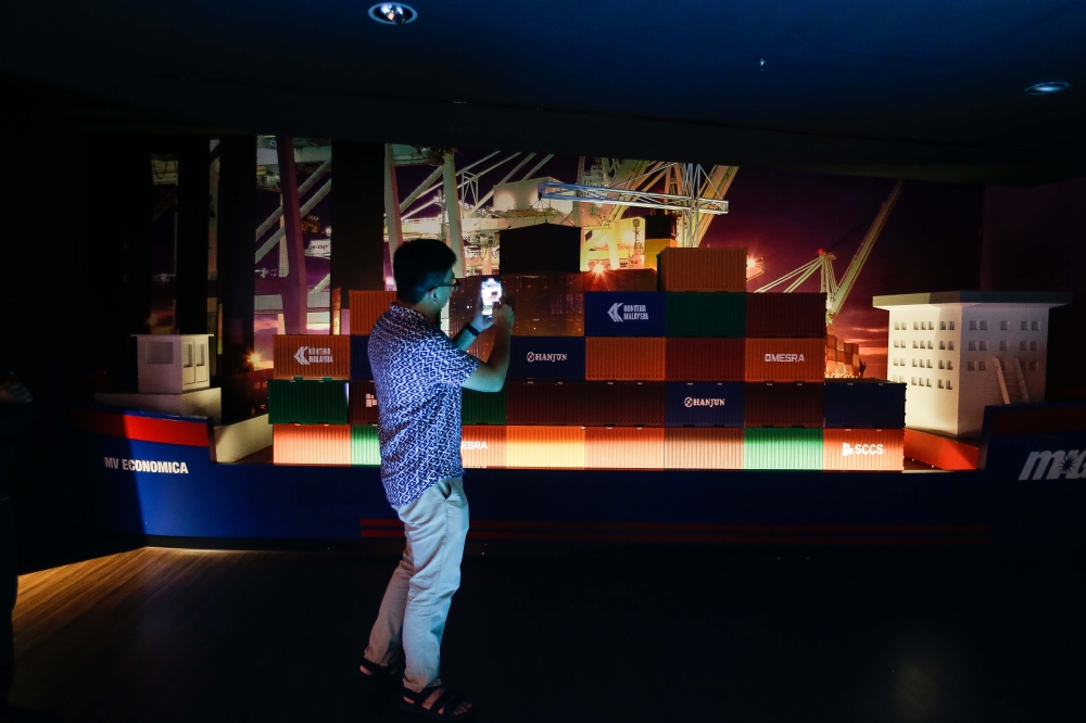 One gallery exhibit in particular depicts a large freighter with shipping containers stacked atop one another, whereupon unfolding them will showcase Malaysia’s international trading partners and their traded commodities.