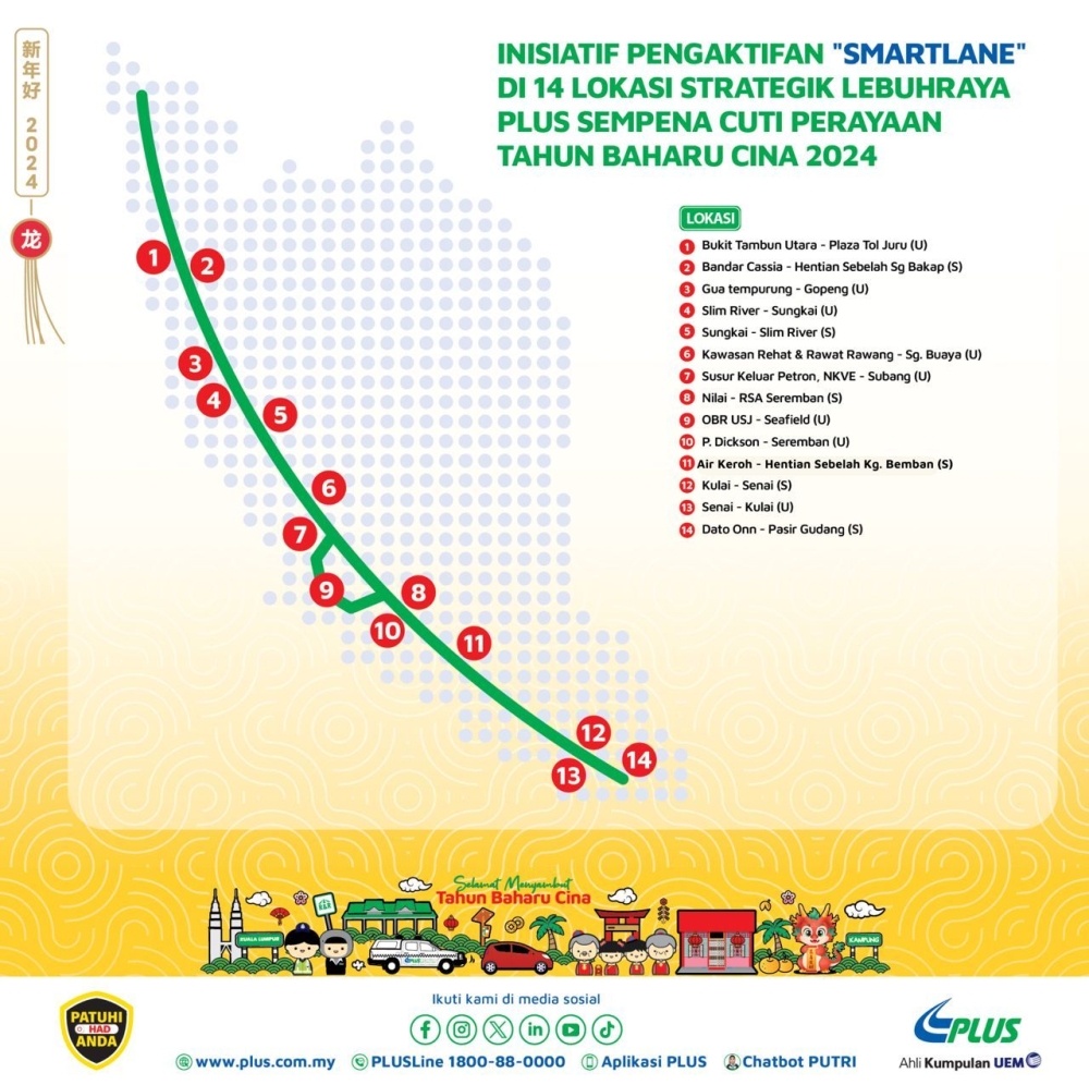 PLUS has activated a total of 14 Smart Lanes during CNY 2024